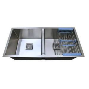 HAPPY HOMES 304 Grade Double Bowl Handmade Kitchen Sink (32″ x 18″ x 10″)